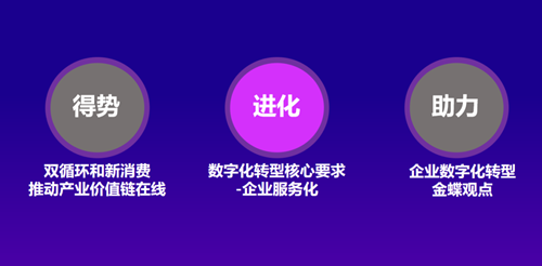 金蝶中國消費行業群解決方案總經理吳雪軍帶來《消費互聯疊加產業互聯——金蝶消費行業數字化解決方案》分享,基于“得勢”、“進化”以及“助力”三大關鍵詞,深入剖析目前雙循環和新消費的現狀,并精準抓住消費企業發展中的一大痛點——企業業務需求變化快過IT體系建設,給出了解決之道。