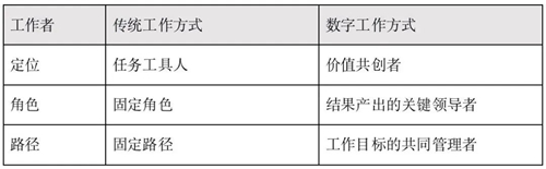在數字工作方式中,每個工作者都是價值共創者,是對工作新的結果、創造更大價值,這是數字化時代底層邏輯的變化。