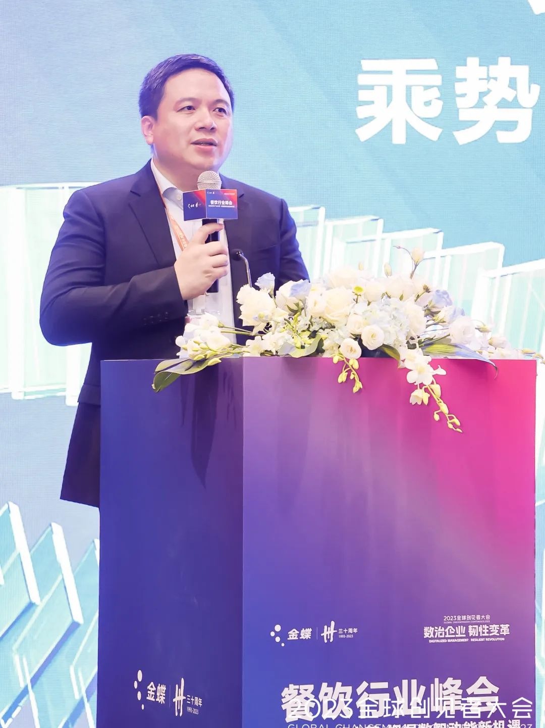 8月8日,2023全球創見者大會餐飲行業峰會在深圳舉行。活動聚焦餐飲企業當下面臨的發展挑戰,特邀金蝶中國助理總裁、營銷與交付管理部總經理王劍,江南大學教授徐學明,金蝶中國餐飲行業總經理翟岳成,稻香集團資訊科技部副總監曹鎮華,深圳數位大數據副總裁姜輝,錦峰工程技術服務(成都)有限公司CEO劉昊義等行業專家及客戶代表出席,共論產業變革大勢下,餐飲企業如何把握數智動能新機遇,做好產品、開好門店、控好管理?